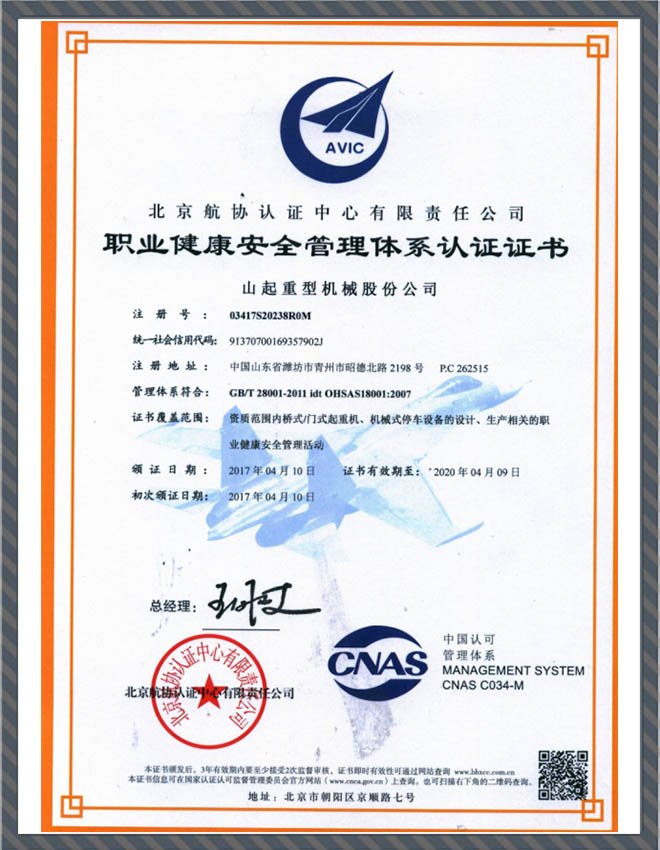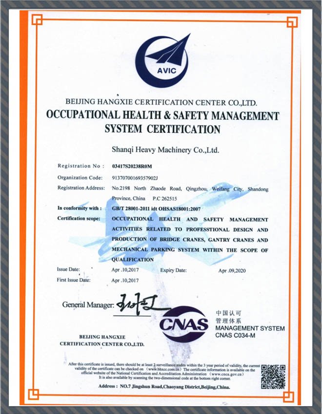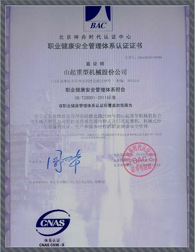 • 職業(yè)健康安全管理體系認(rèn)證證書英文