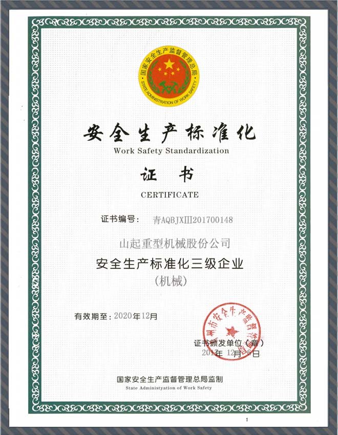 • 安全生產(chǎn)標(biāo)準(zhǔn)化證書