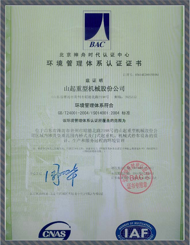 • 環(huán)境管理體系認(rèn)證證書