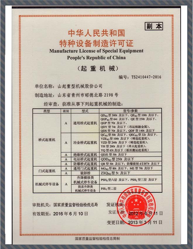 • 特種設(shè)備制造許可證