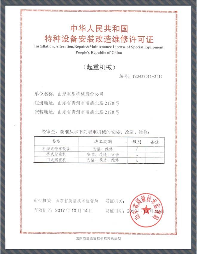 • 特種設(shè)備安裝改造維修許可證